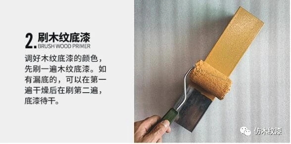 步驟一:刷木紋底漆,在需要施工的材質上均勻的刷上一遍木紋底漆,如有漏底的,可以在第一遍干燥后再刷第二遍。